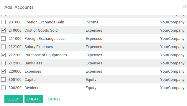 En este caso seleccionamos las tres cuentas relevantes usadas en donde registraremos nuestros gastos.