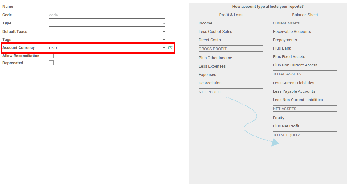 Ahora que esta trabajando en un ambiente multi-moneda, todos los ítems contables serán vinculados a esta moneda, locales o extranjeros.