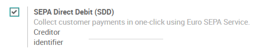 Go in and activate the SEPA Direct Debit (SDD) Feature. Enter the Creditor Identifier of your company. This number is provided by your bank.