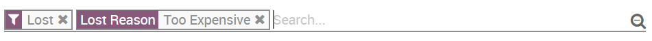 To retrieve lost opportunities and do actions on them (send an email, make a feedback call, etc.), select the Lost filter in the search bar.