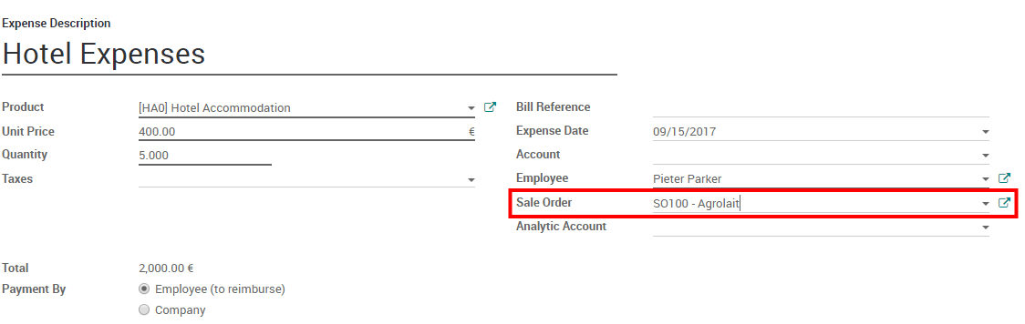 - As a salesman, create and confirm a Sales Order for the services delivered to your customer. If you don't put any expense in the order, it will be added automatically once posted by the accountant.