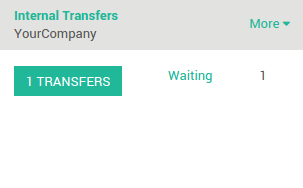 Vaya al tablero de Inventario. Verá que hay una sola transferencia lista (el movimiento a la zona de control de calidad) y una esperando (el movimiento a existencias después del control). De clic en el link # TRANSFERENCIAS en las Transferencias Internas para procesar el control de calidad.