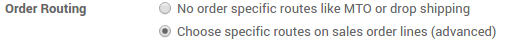 En la aplicación de Ventas, vaya a y marque Elegir rutas específicas en líneas de órden de venta (avanzado).