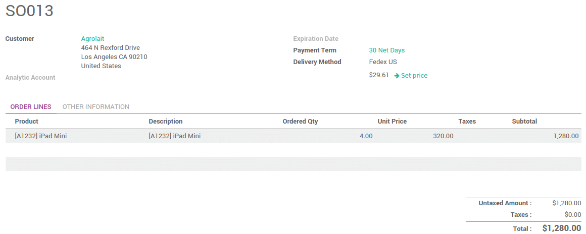 La órden de entrega creada desde la órden de venta tomará la información de envío desde allí.