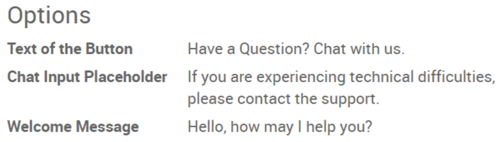 En el formulario del canal, en la sección Opciones, se pueden escribir varios mensajes para que aparezcan automáticamente en el chat. Esto atraerá a los visitantes a contactarlo a través del chat en vivo.
