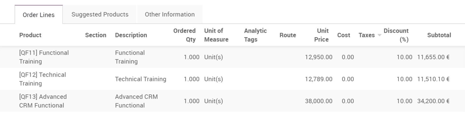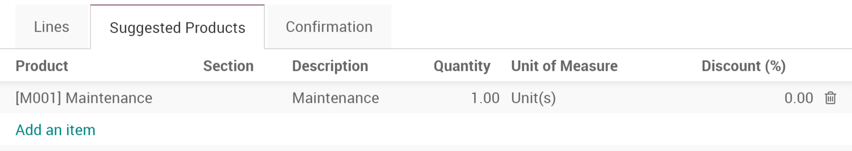 Los productos sugeridos se pueden configurar en Plantillas de cotización.