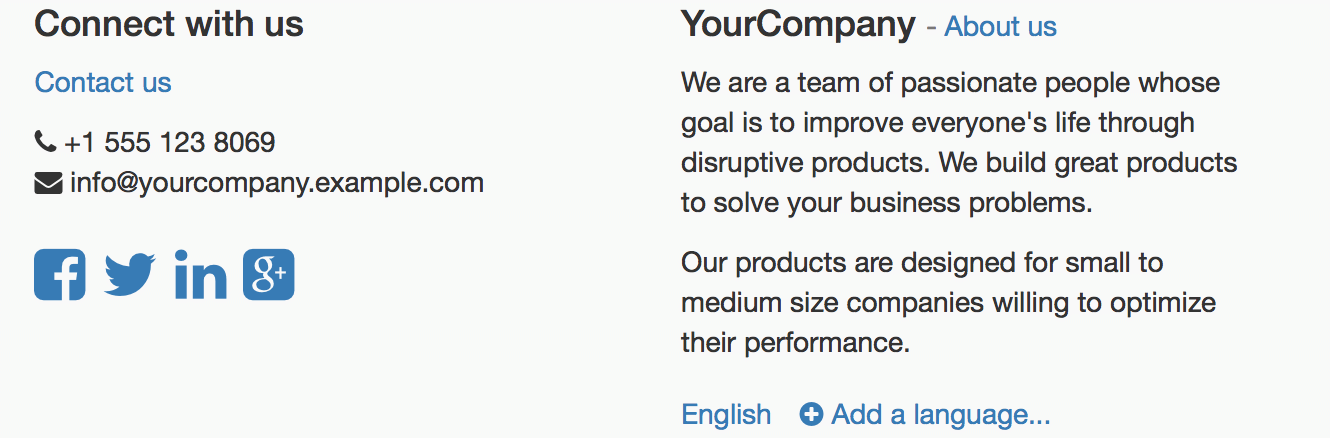 Además de crear buenos y modernos sitios web, Odoo le da la posibilidad de traducirlo a diferentes idiomas.
